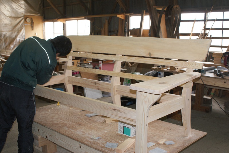 車椅子大工の大和田が創作していた長椅子が出来上がりました。手伝いも居たのも確かではありますが、よくぞここまで頑張って造り上げたと思います。東北住建さんの春の展示会が初のお披露目となる予定ですが、その後好摩の板倉に置いておく予定です。今現在はこれに合わせた一人掛けの椅子造りに取り組んでいましたが、更に進化させた椅子造りに取り組みます。