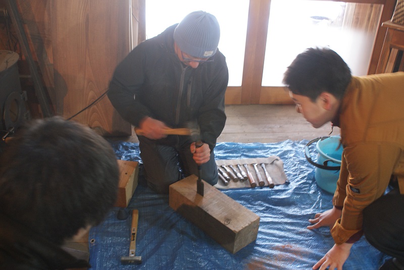 やはりこの時期は、油断できません。突然ドカッと雪が降り、辺り一面の雪景色となる事が度々あるのが、雪国の春なのでしょう。そうして、本格的な春の到来を体で感じる気がします。昨日は、午前中に突然のお打合せをいただいて、日記を書かないまま午後の鉈屋町修景フォーラムに参加してしまいました。地域の住民の皆様の熱い思いの熱気を感じて、今現在蔵の修繕工事をさせて頂けている事への誇りと嬉しさを感じてまいりました。杢創舎大工塾は引き続き鑿研ぎをしていますが、いよいよその手道具を使用した手刻みにも取り組みました。私は昨日のフォーラムの会場で、こうした昔の街並みを維持修繕するためにも大工の必要性を訴えさせていただいたのですが、こうして若手大工の育成をしていることが、私の心の証です。