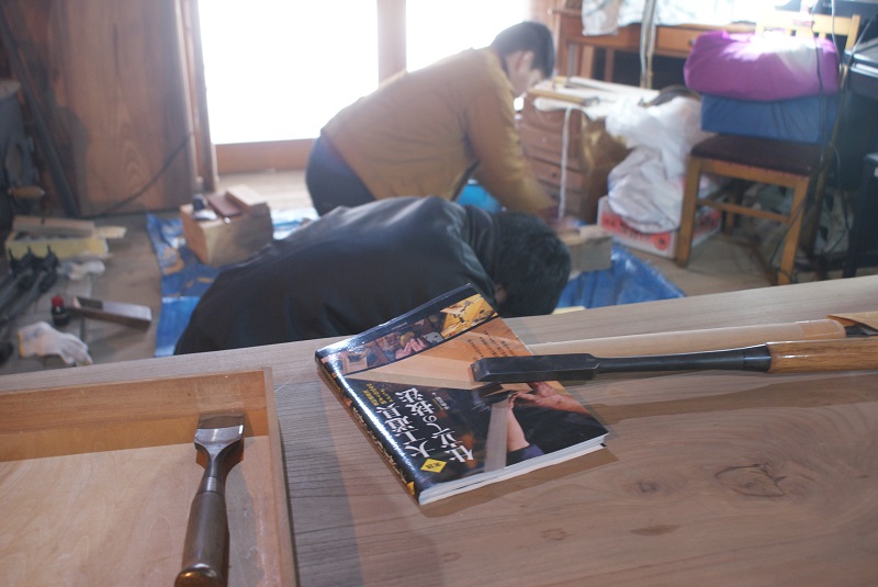 新人大工の勉強会の風景です。正に杢創舎大工塾のスタートとなりました。最初はやはり、手道具作りです。新品の鑿を買うと直ぐに使えるものではなく、刃先だけでなく柄の部分の輪っかや叩く部分の小口の調整も重要となりますから、先輩大工に指導をお願いして、今後自分で扱う為の道具の調整に取り組ませていました。この後は研ぎに入るわけですが、とにかく研いで研いで研ぎまくりとさせようと思います。大工がこうした鑿や鉋を扱う機会が少なくなった現代ですが、当社ではそうした昔からの息吹がこうしてまだ確りと息ついています。