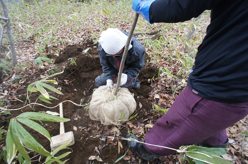 今年新築予定地の整備をしている風景です。庭木と云うよりも山の樹木が全て取り除かれる予定なので、可愛い樹木たちが可哀そうで無造作に処分できないと聞いて、移植計画に取り組みました。昭和30年代生まれ世代は、子供のころからこの様な家の仕事的な作業を手伝う事が多く、大方経験があると思います。しかし現代は、この様に山で自然に触れる経験をする機会は殆ど無く、仕事の上でしかないのではないでしょうか?それでも一緒にこうして働く20代や30代にとってはこの後齢を重ねても、生きた経験として心の隅にでも残ればいいなーと思います。