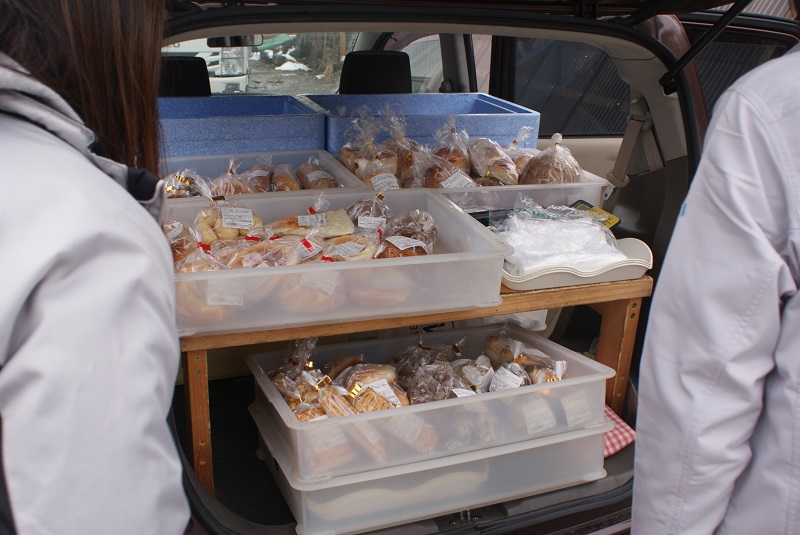 昨日、グールマンと云うパン屋さんの車上販売の方が当社に来られました。なんと、その方は、以前当社での木工教室に参加した小学校のN君のお母さんだったのです。廃校になる前に槐の木で創作した写真立をプレゼントしたのですが、エンジュの言葉の響き通りのご縁のお陰かもしれませんね。・・・「オーイパン屋さんだよー」と場内に声掛けして集まった皆で買わせて頂きましたが、これから二週一で来ていただけるそうです。