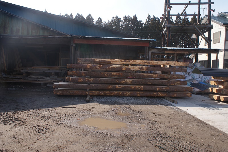 真夜中の強風は春の暖かさを連れてきました。昨日の曇天とは大違いの青空です。さて好摩では製材が進み、アカマツやスギが板や梁、柱に形を変え、白い木肌を見せています。この時期は、製材されたての木々から甘酸っぱいような針葉樹独特の香りが場内に広がります。朝にぴったりで爽やかな気持ちになりますね。(栗城)