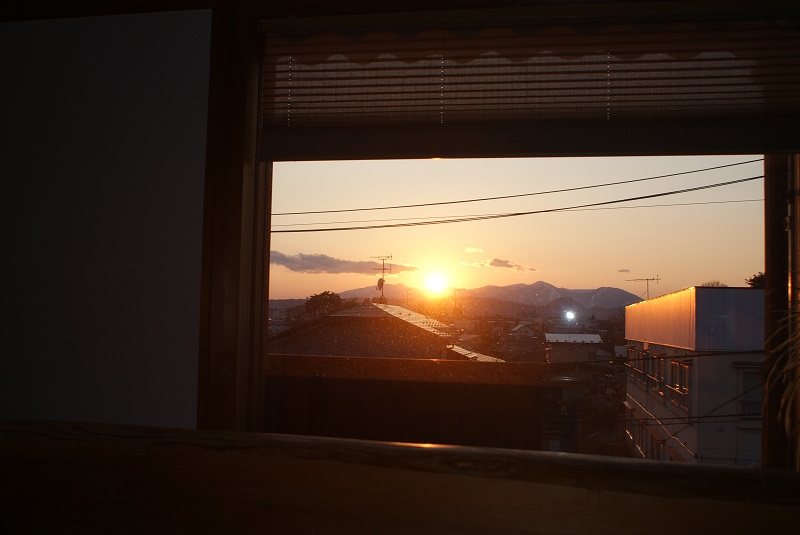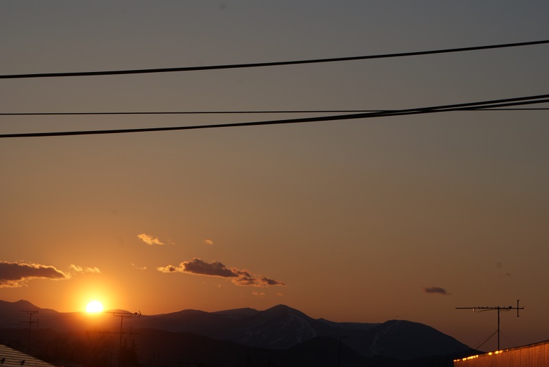 昨日は午後からの講習会の後、自宅に早く戻って早退して休んだのが17時30分頃でした。西の空から自宅の窓に差し込む強い陽光に目を向けると綺麗な夕日が山の向こうに沈むところでした。