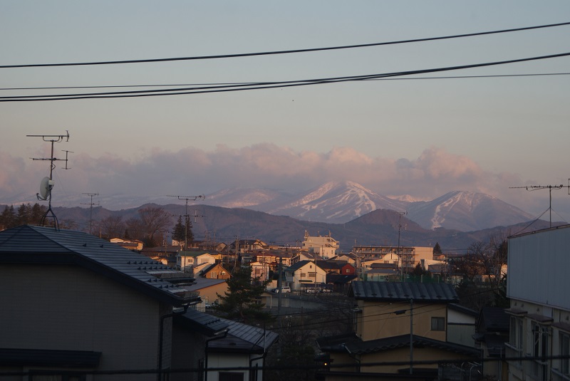 昨日の写真と同方向ですが、朝日に照らし出される峰々が自宅の窓から望めます。このところとても良い陽気で、文字通りの春の訪れです。