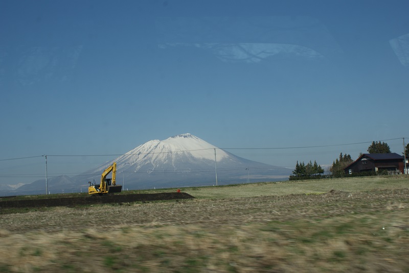 昨日は夕刻の岩手山でしたが、今朝は朝の通勤路で車中から望む朝の岩手山の写真です。重機が掘り起こしている黒土がここの土地の豊かさを物語りますが、自然の力を感じるのはこの時期の土です。大地は朽ちて倒れたものを無に還しながらもいつもこうして新しい命を生み出します。私たち生き物はそうした土の力から食を得て漲る魂のエネルギーを頂いて育ち生きてきました。まして人間は、美しい景色に心癒されて明日への希望と元気を得て魂の糧を内に秘める事が出来て来たのだと思われます。好摩に引っ越してからの通勤路で漲る大地からのオーラを脳裏に籠める大切な一時が在ります。