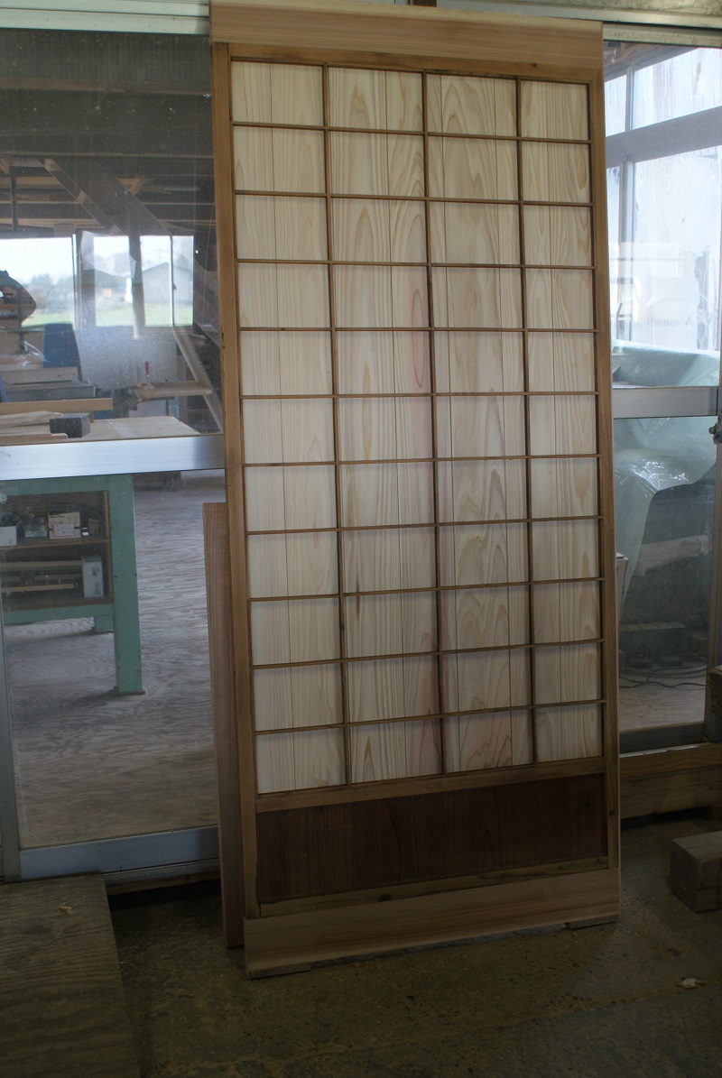 現在建具の再生に取り組んでいます。障子は和紙を張るばかりではなく、杉板を張る板戸にも作り直すことが可能です。捨てずに修繕再生してまた使う取り組みは環境面からも有意義であると考えられます。また。、こうして無垢の木で作られた物は直せる魅力に溢れているのです。当社のこの理念を、永久的に伝え継承して参りたいと思います。