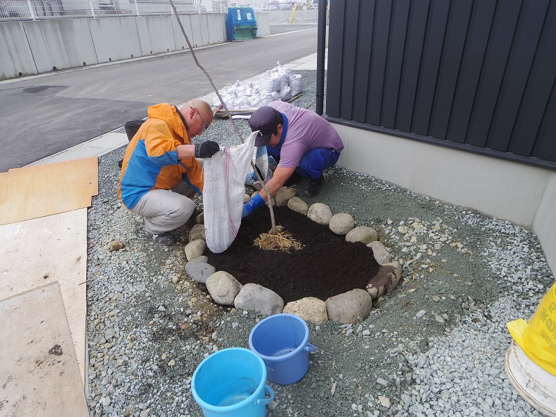 下太田の見学会にご厚意でお住まいを会場としてご提供いただけた事へも感謝の気持ちで、庭造りをさせていただきました。サプライズです。