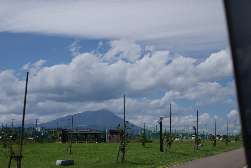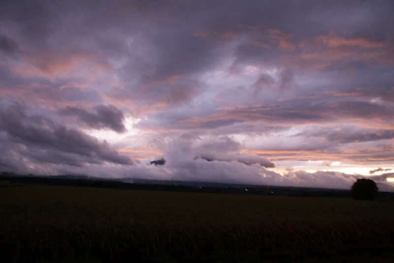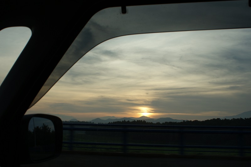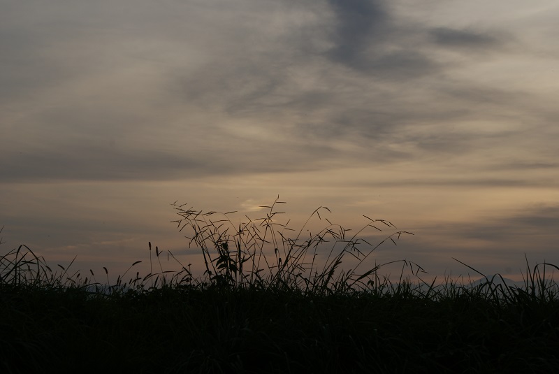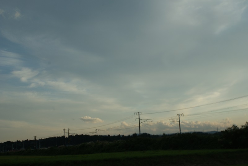 何時もの帰り道は、玉山柏木平です。岩手山の横方向に沈む太陽が南昌山の上に浮かぶ雲を虹色に染めていました。毎回ここからの景色を写していますが、常に違う表情を見せてくれます。田圃の畔のおのころ草が揺れる方向に沈む夕日は初秋のもの寂しさを掻き立てています。こうして、巡る季節を感じながらこの地の美しさを思うのは心の栄養であり、そうした写真を写せる時間が喜びです。