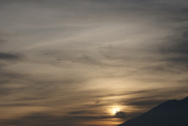 南昌山方向に沈む夕日が辺り一面を輝かせています。