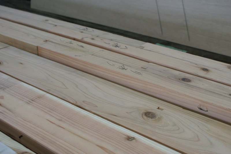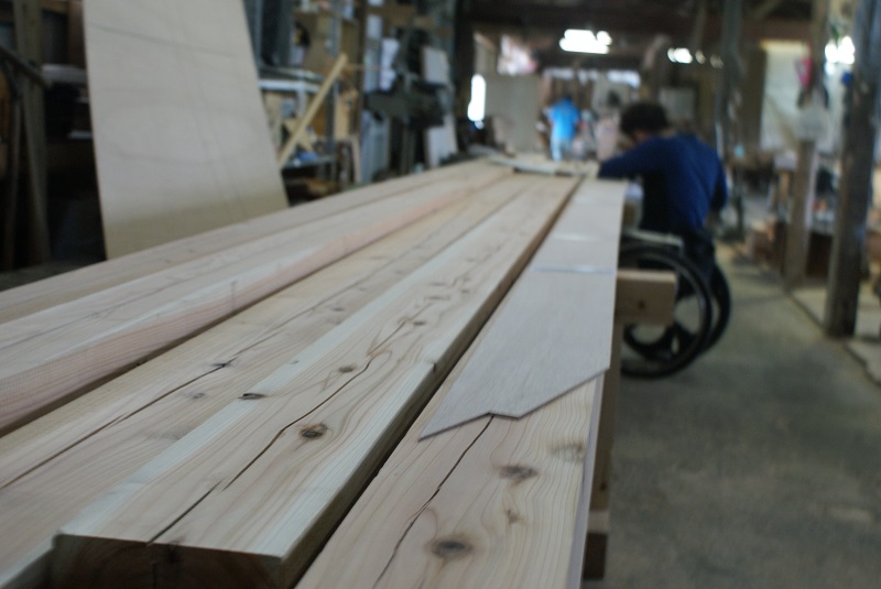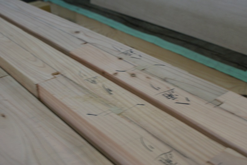 登り梁は金輪継ぎで組んで長材にしてから墨を付けています。