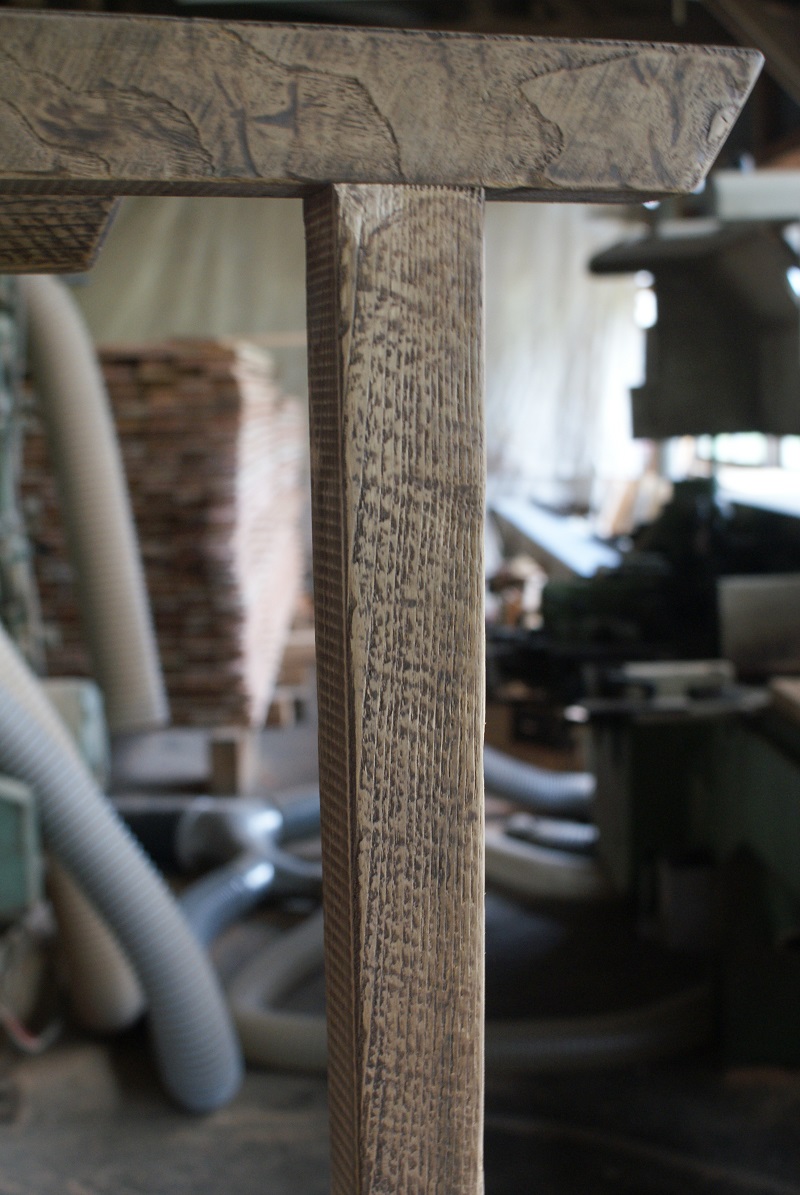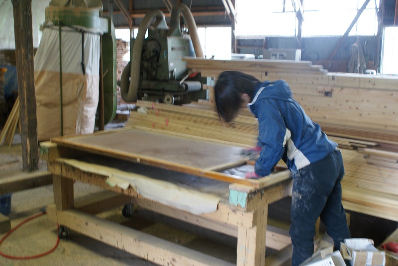 弊社の塗装職の親方は安藤と云いますが、今年新卒入社の鈴木が、色々と教えを受けています。無垢の木に塗装を施すと、木目を際立たせ、外部使用にも耐え得る扱いを可能にしてくれます。古びてもまた塗り直す事で、再生利用可能にしてくれるのが塗装と云う仕事の素晴らしさであろうと思います。写真は化学塗料ですが、時に柿渋や桐油を扱う事もあります。そうした古典的なものと、近代の改良を工夫された物とを取り混ぜながら、木味の魅力を引き出す塗装と云う仕事を継承している作業風景がこの写真の中に存在しています。その鈴木は、当社のフェイスブックやインスタグラムの製作もしてくれました。古来からの無垢の木を扱う技術を継承する杢創舎が、地域への発信力を現代のIT技術に頼るのは、若き世代への期待と憧憬でもあり、私を衝き動かす原動力なのだと感じます。