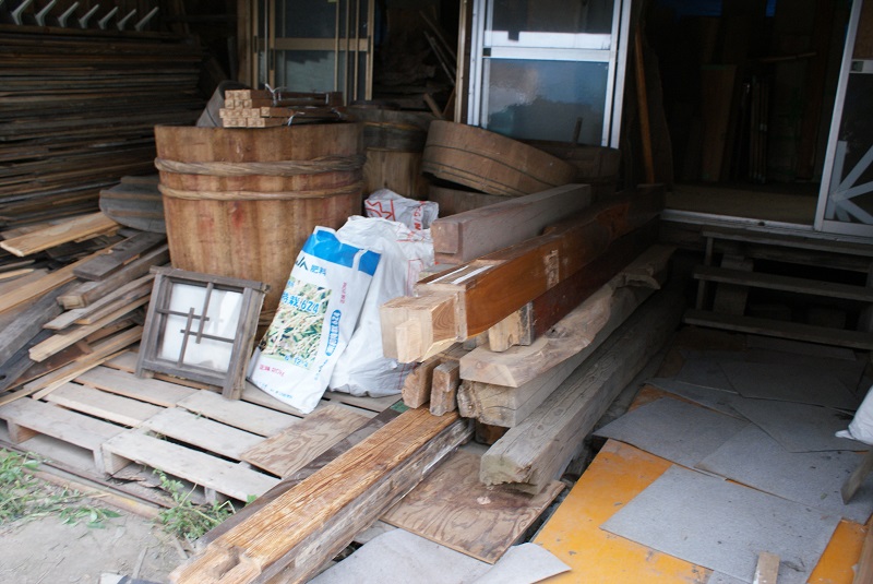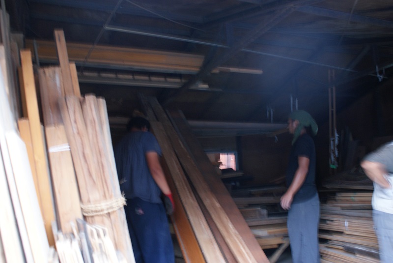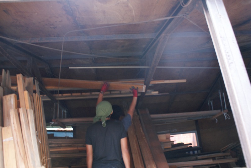 古材置き場の片付け整理作業を致しました。私が元気なころは、自分で片したので何があるか一目で分かりましたが、病気してからはほったらかしだったので、足の踏み場もないほどに荒れていましたから、皆に声を掛けて手伝って貰い、私は口だけ出して一緒に整理すると、凄いのが沢山出て来ました。そして何より背の高い二人は脚立も不要でとても便利に働いてくれました。感謝です。