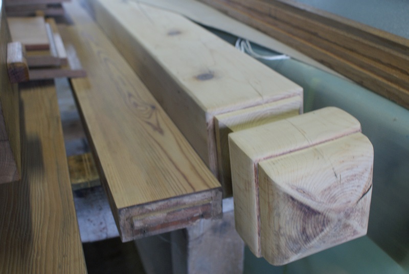 階段の親柱は刻み込まれて穴だらけでしたが、埋木を施して磨いたのでまた使えます。これをオイル仕上げで良い味が出ると思います。