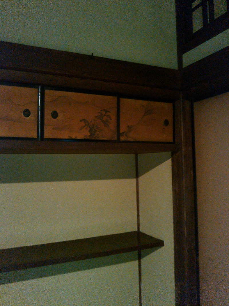 襖の和紙を外して、漆調に枠を黒く仕上げて、白いルナファーザーを貼る予定です。