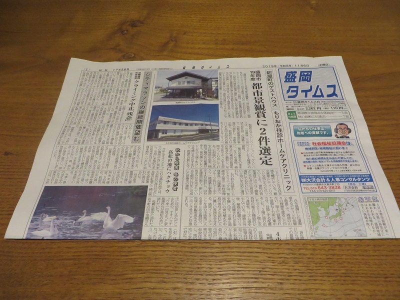 今日の「盛岡タイムス」の一面、2019年度都市景観賞に当社で鉈屋町のリノベーションした蔵が、選ばれたとのニュースが報道されています。現在はゲストハウスとして活用されています。なんかこの所新聞やテレビに取り上げられる機会が増えてしまい、恐縮至極なのですが、これまでの取り組みをどこかで認められているのかと思うととても嬉しいものです。他の写真は昨日の雫石の建て方の際に写したものです。