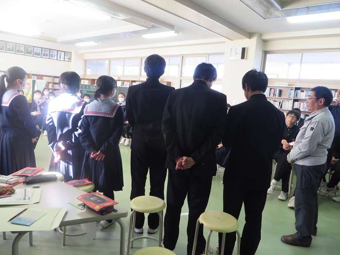 すっかり落葉が舞う季節になりました。昨日は、渋民中学校の「みらいパスポート」という授業に地元企業の社会人講師として参加してきました。この授業では、こどもたちがこれからの未来である社会人と直接会話することで、今までにはなかった生き方や価値感を知り、柔軟な心を育て、一人ひとりが幸せに生きていく社会の実現を目的としたプロジェクトです。私たちの他にも、7組の多種多様の地元企業さんも参加し、こどもたちが興味深々で話に耳を傾けていました。私自身、普段あまり中学生と会話のする機会がないのですが、個々に夢があること、今一生懸命取り組んでいることがあることに驚きました。この授業を通して私も学ぶことが多く、未来があるこどもたちのためにも、安心できる社会づくりを私たち大人がつくりあげていかなければならないと実感しました。(栗城)