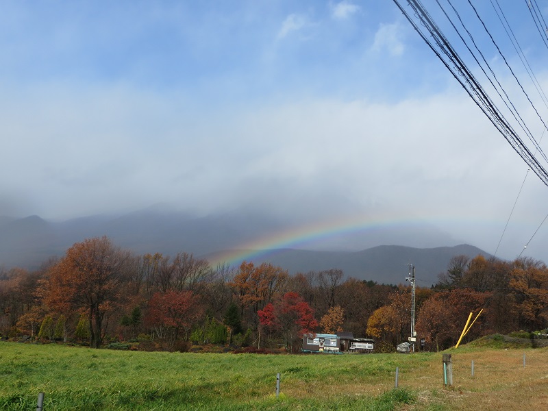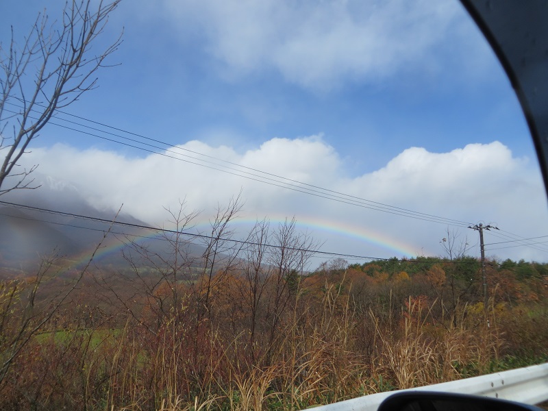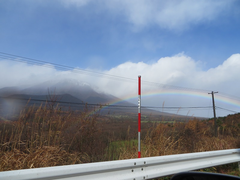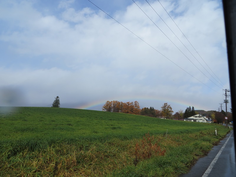 雨の木曜日、毎月通うリハビリセンターからの帰り道。会社に向かう途中の小岩井農場から抜けると前方に架かる虹が見えました。何か良い事ありそうな気分になるのは子供の頃からの癖です。