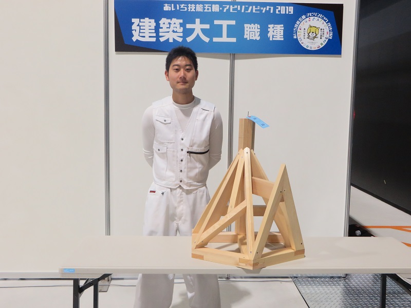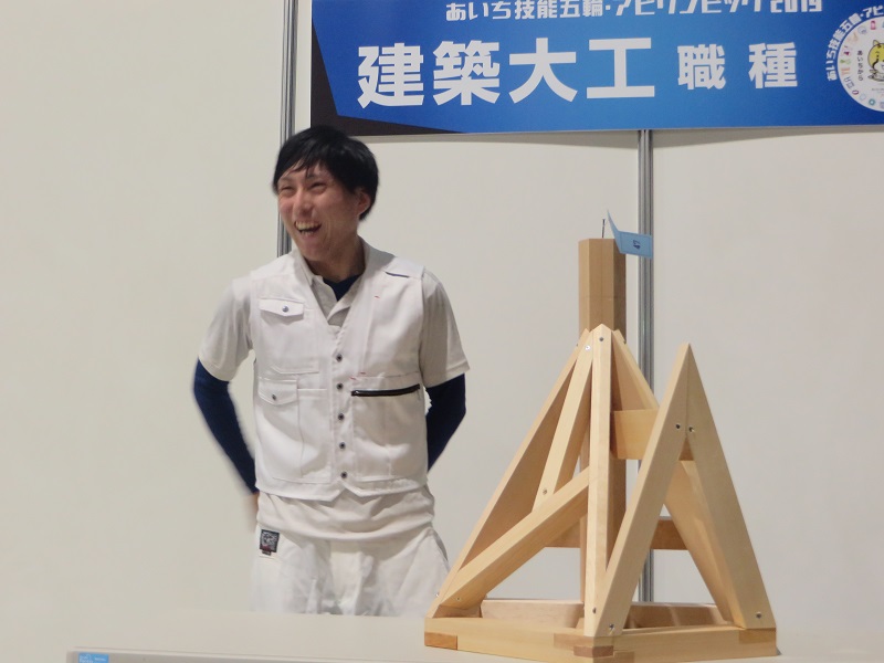 2019年愛知技能五輪全国大会に置いて、建築大工部門で当社佐々木が敢闘賞を受賞しました。佐々木は岩泉町出身で、私と専務の同級生の息子です。奇しき縁で今年の春令和元年に杢創舎に新卒入社した20代の若き大工なのです。今回は二人の大工が出場しましたが、もう一人の小畑は残念ながら入賞は果たせませんでした。でも私から見れば二人とも練習から良く頑張りました。競技会場での出来も悪くなく、褒めてやりたいと思います。思い返すと8年間で、敢闘賞3名,銀賞1名の成果となりました。
