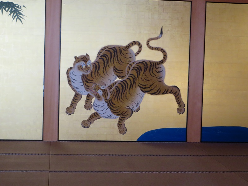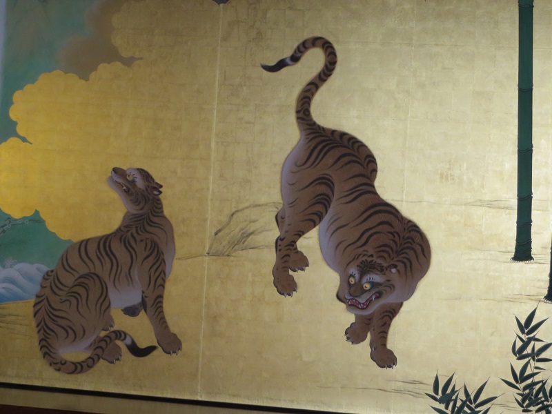 昨日の続きで、公開されていた本丸内部の装飾絵類です。他床も柱も天井も無節の桧で構成されていて、壁は金箔の煌びやかさでしたから、落ち着かないことこの上なく、田舎者なんです私は・・・と云うのを実感してしまいました。