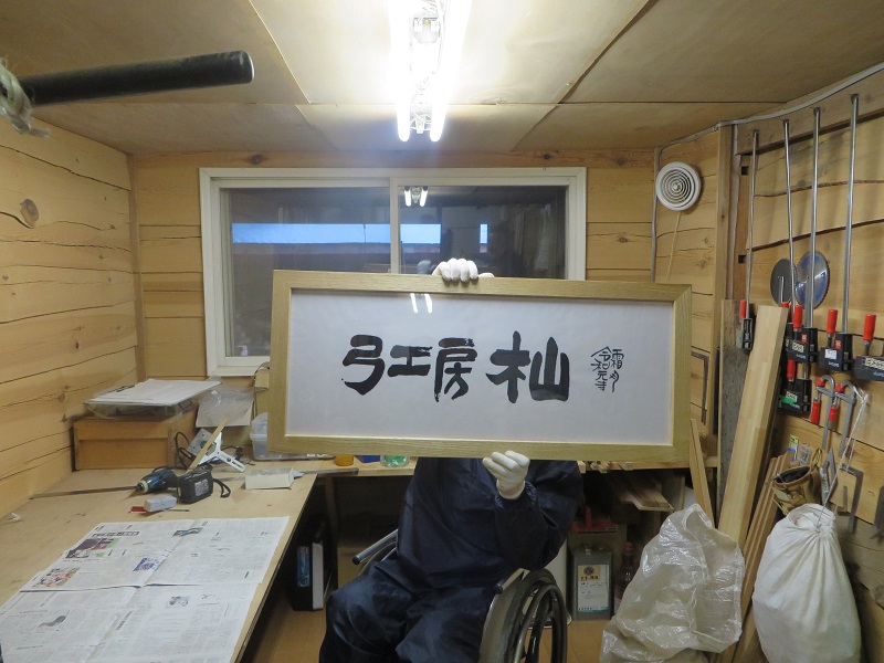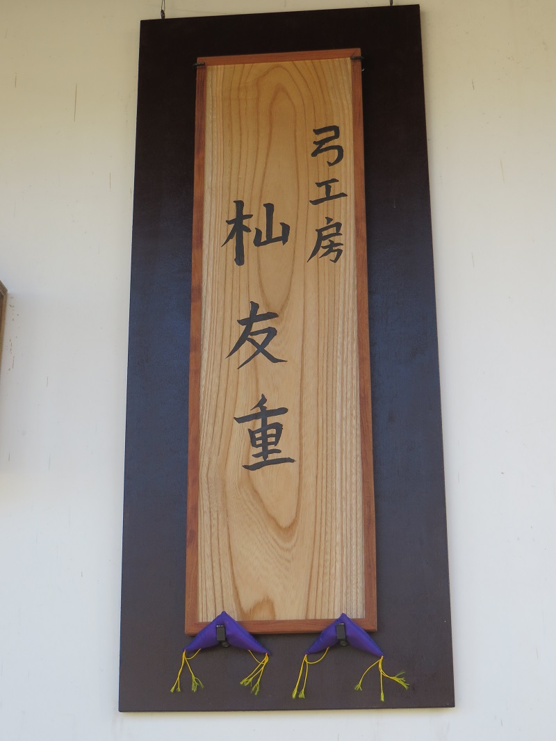 京都の柴田勘十郎師匠様からののれんわけの看板だそうです。東北初の弓師誕生です。
