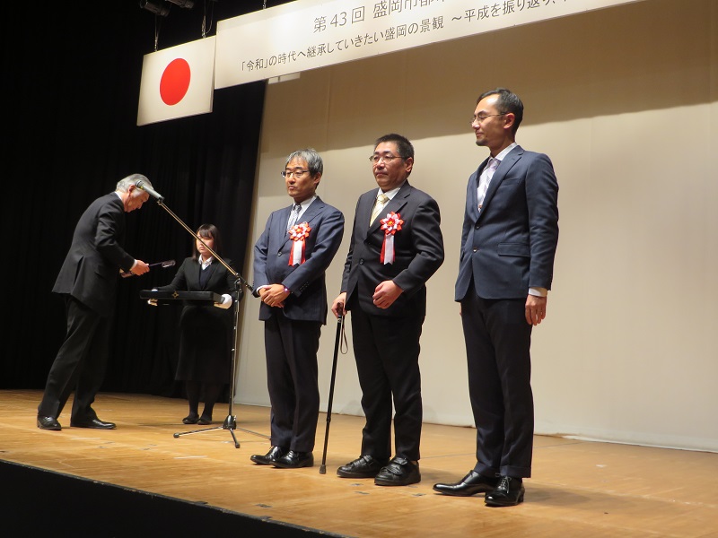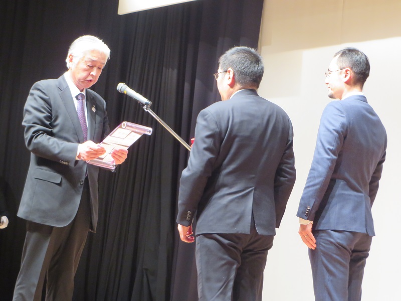 左から、建築主・設計者・施工者として並んでそれぞれが表彰を受けました。