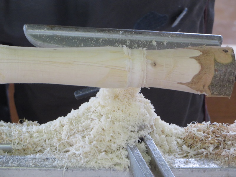 次にお父さんが家族が見守る中鉋掛け体験しました。