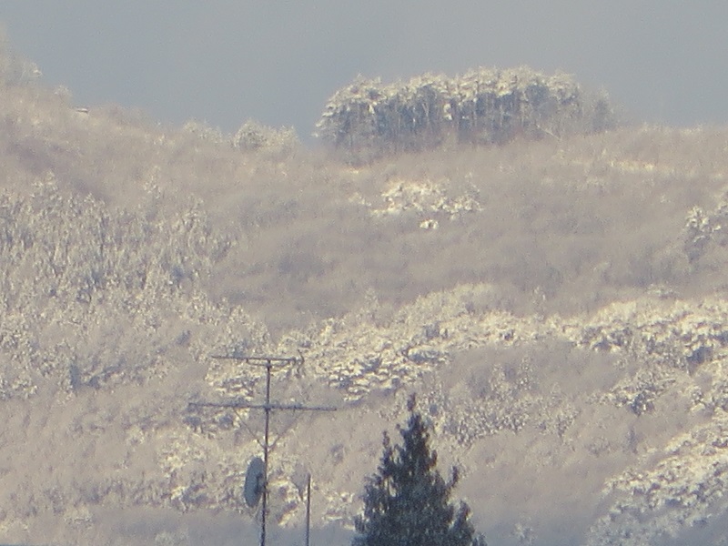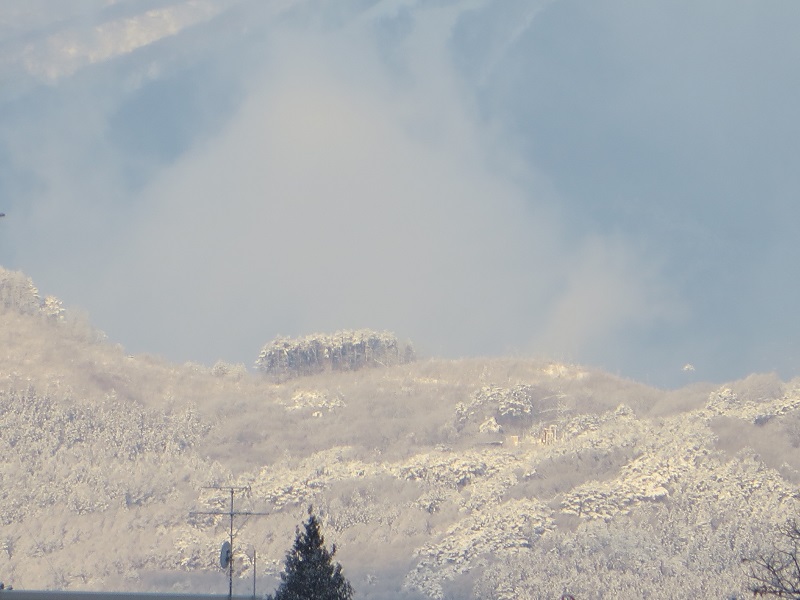 今朝は相当冷え込んだ雰囲気ですが、我が家の朝は前夜の温もりで寒さを感じませんでした。それでも起きて直ぐに薪ストーブを焚いて暖かさを維持させるように努めます。そうすると一日中寒さ知らずになって翌日も快適に過ごせます。そして、お湯を沸かしコーヒーを淹れて寛ぎの一時を過ごしながら窓からの駒ケ岳方向の山々の景色を望遠にしたカメラで覗くと、写真のこの景色でした。