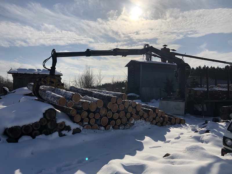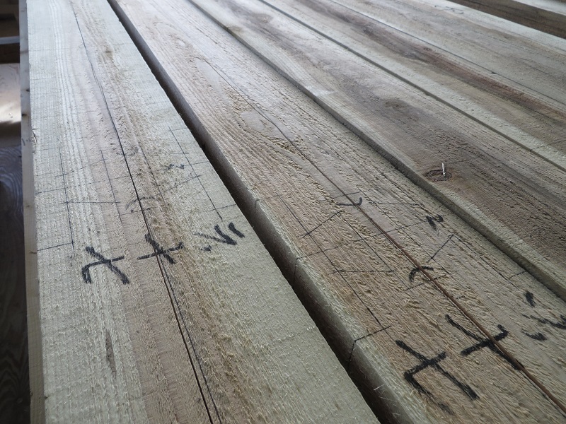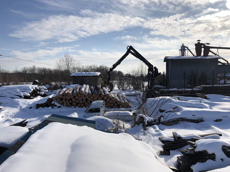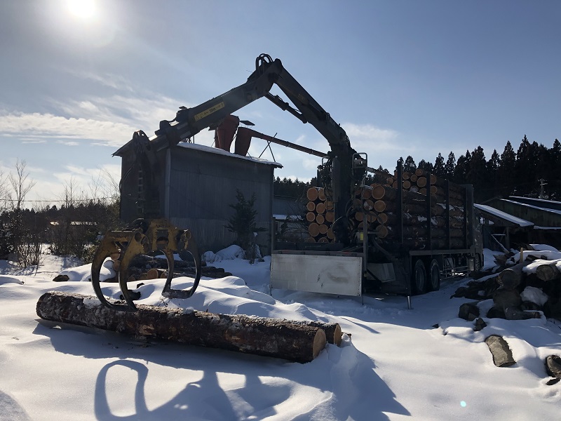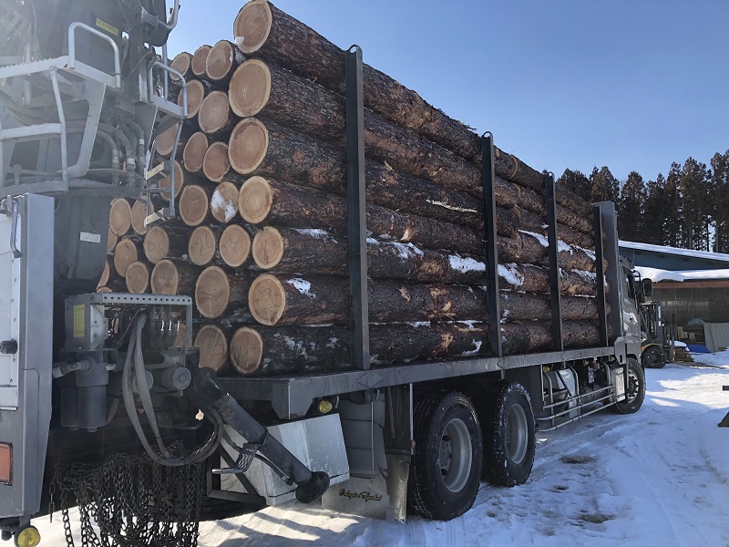 先日伐採地の山で確認した落葉松の丸太が届きました。伐採班の運転手さんが「最近、カラマツは製材されることなく、チップや合板材に使われる事が多く、製材して家を建てる木材に使われるのは有難いですね」とお話しされていたそうです。別に世の中の流れに対抗しているのではないのですが、人が植えて育てて、その樹木が水質源の涵養に役立ち、土砂災害から守り、二酸化炭素を吸収して酸素を作ってくれながら60年70年と生きて来たのです。適正に製材すれば、建築材としての板にもなるし土台や柱に梁にも使えるのです。燃やしたり粉砕するだけでなく、キチンとした使い方が出来る人間が居ても良いではないかと私は思っているのです。何が正しいのか明言できませんが、人として在りたいのです。
