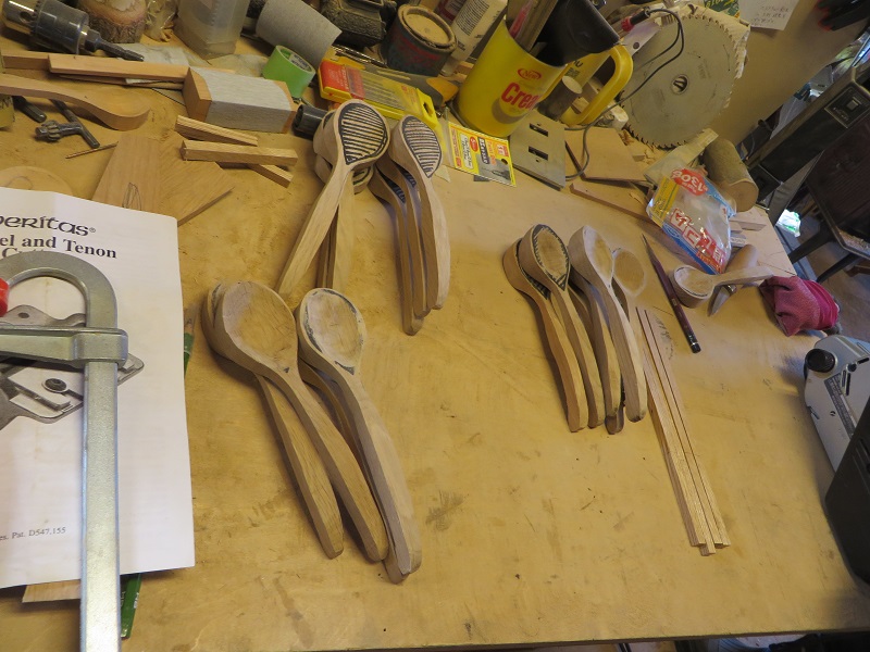 中央公園の保育園建設の為に楢の小木を伐採したので、そのまま廃棄するのに気持ち咎められて、何か作れないものかと枝で造る小物特集の本があるのを見つけて家具担当の職人に本にあるスプーンや箸を作れないかと相談したところ、箸とスプーンに調味料入れに一輪挿しが届きました。今日はスプーンと箸を写真でご紹介させて頂きたいと思います。