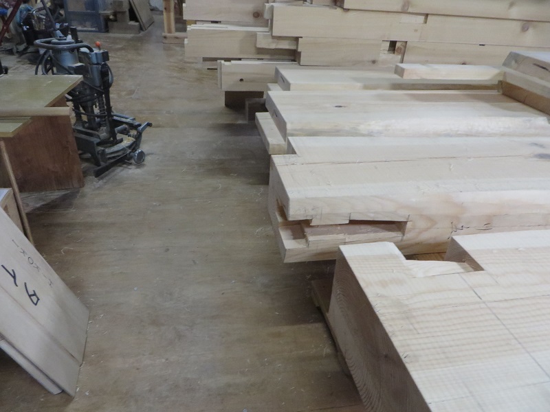 一昨日、墨付け刻み風景をご紹介しましたが、技術を身に付ける要諦がこの写真の中にあります。200本以上もの材料を次から次に同じ作業で刻んでいるのです。これを行う事で体が確りと学び取り腕と脳裏に技術の要が沁み込んで行くのだと思います。それが出来る木材があって、現場があるから有難いものだと思います。それは、大工の刻みのみではなく木工にしても同じことが言えるのです。