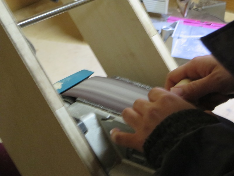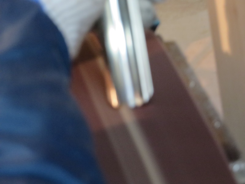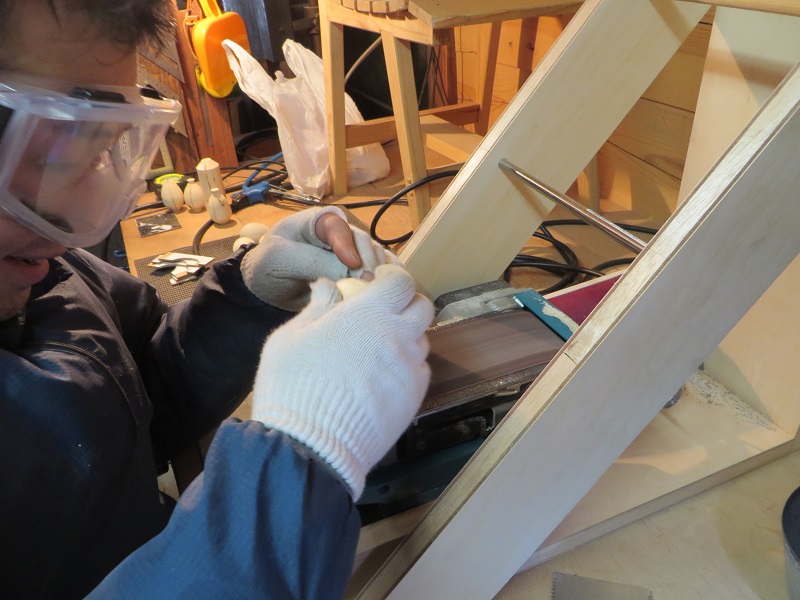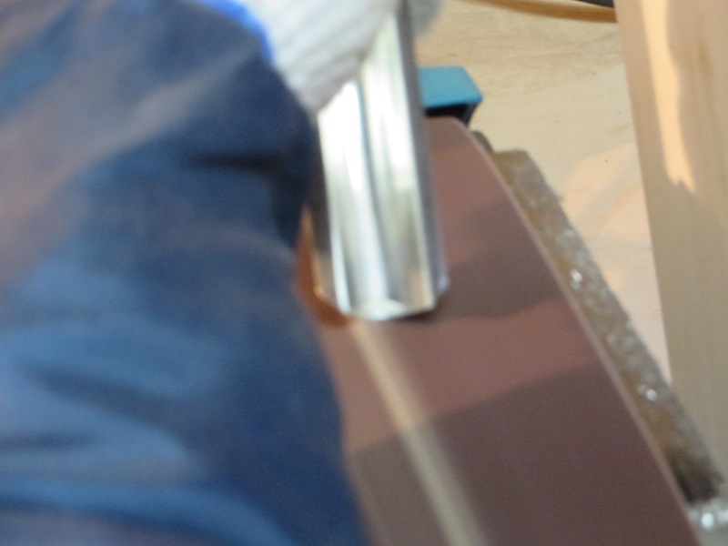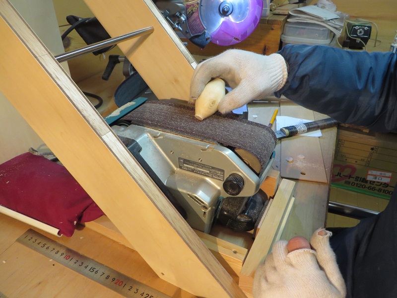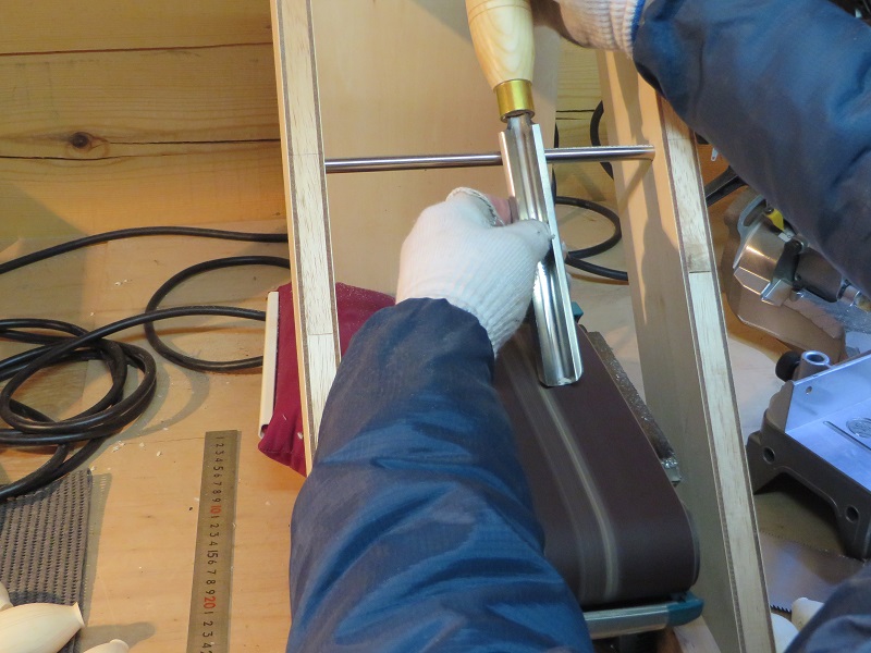 大和田が金具の研ぎ台ジグを自作していました。その使い方が以下の写真です。