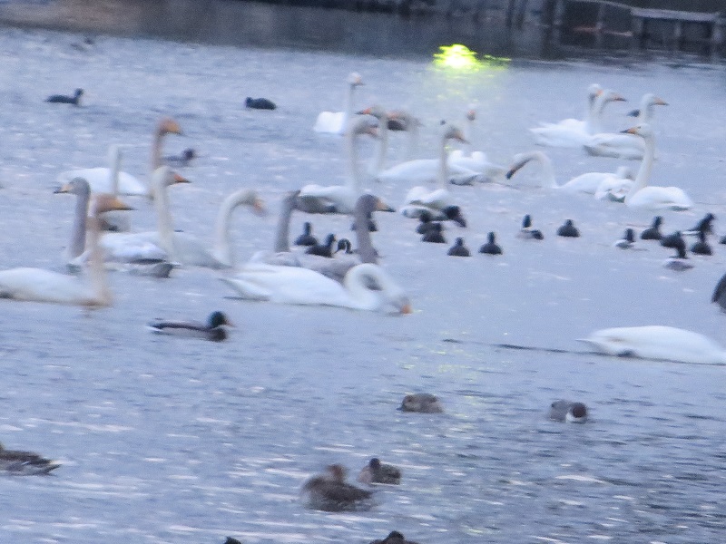 白鳥の北帰航が華やかに始まっています。特に今年の四十四田ダム湖は何時もの何倍もの渡り鳥が居て、カメラを構える人々の群れもまた凄い人数でした。今日は土曜日だからお休みの方々なんだと思います。