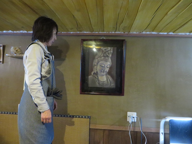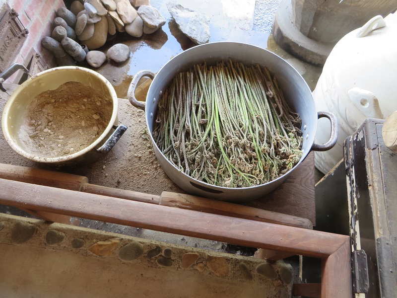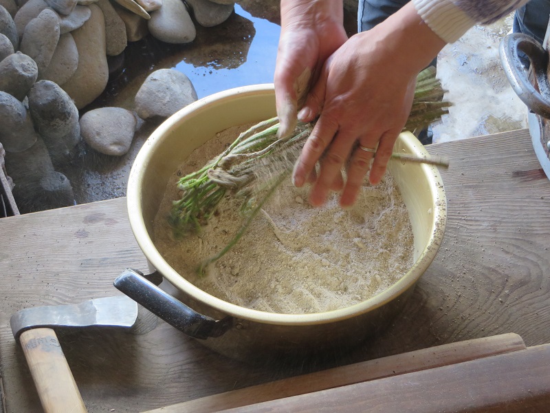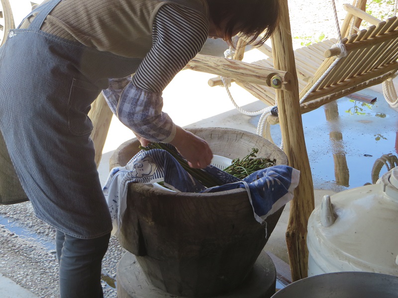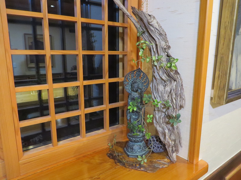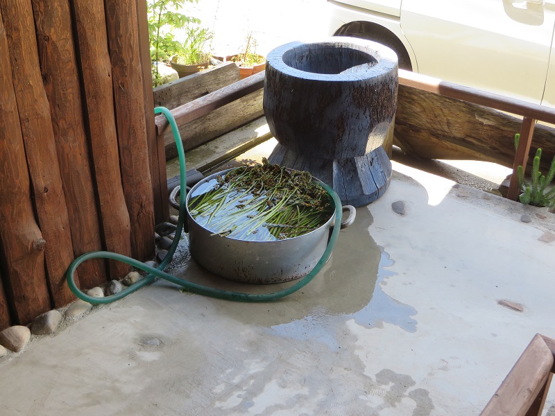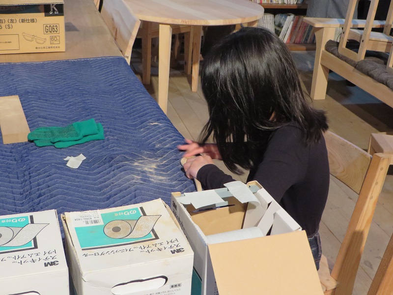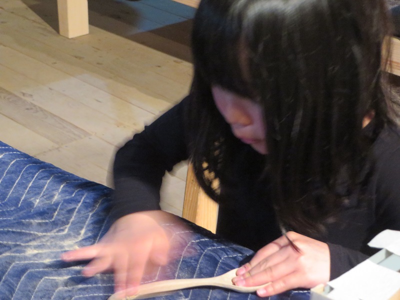 安藤の手にかかると、木の臼をバナーで焼いて無色透明のUV塗料を塗布して、この写真の様な色にセラミックス化させたり出来るのです。古民具の再生もお手の物です。