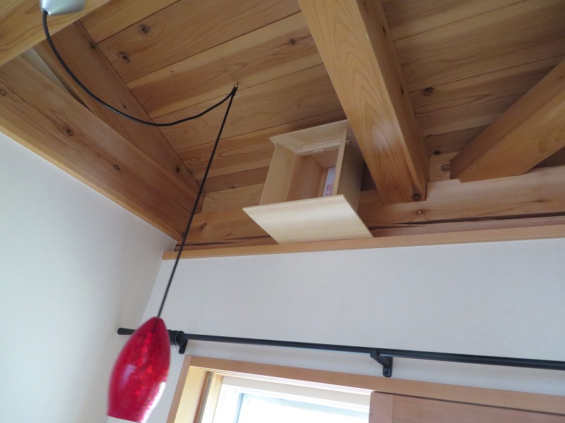 角柱の上に受け梁を入れて角柱を取り外せるようにしてありましたので、障害物が無く車椅子でも自由に通れる広さが確保できます。