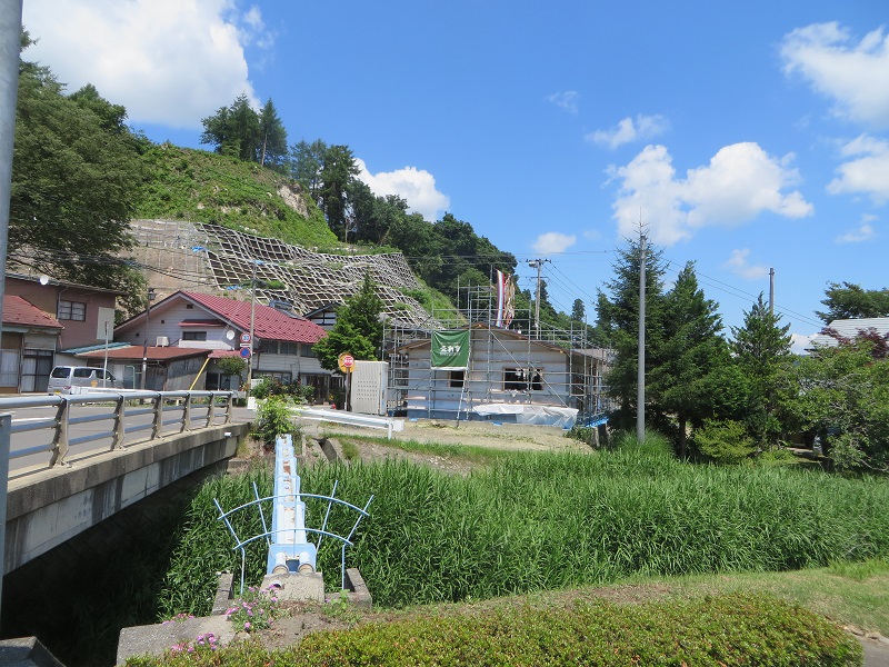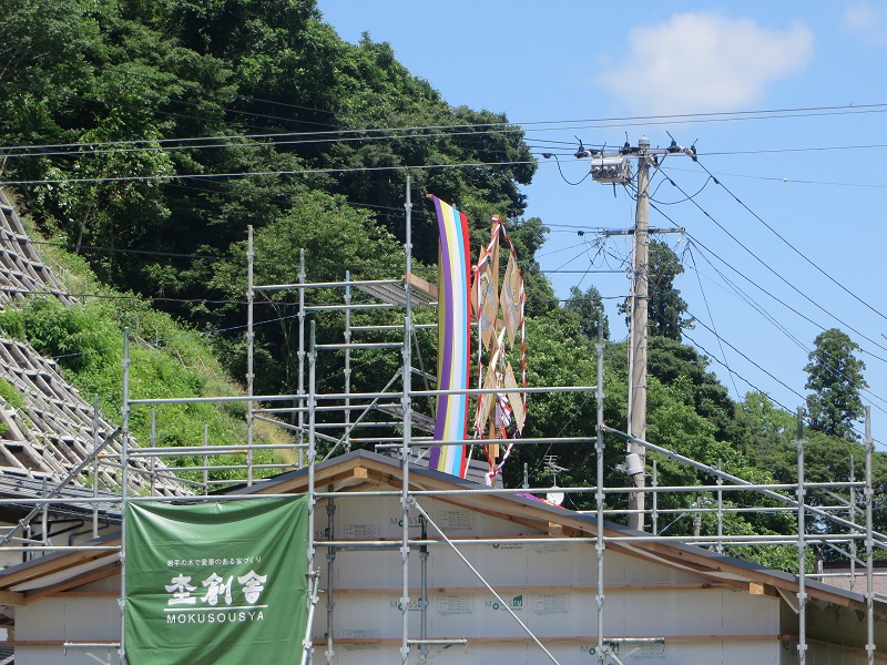 現在浄法寺町で新築工事中ですが、無事上棟し、大工による屋根も葺き上げています。地域では七夕飾りが飾られて古からの風情が町に溢れています。そうしたなか、伝統の木組みでの棟上げも通る人々の目線を惹き付けている雰囲気でした。