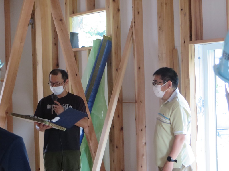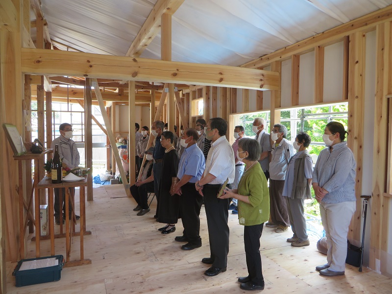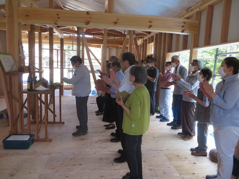 昨日は浄法寺町八幡館の新築工事現場で上棟式が執り行われました。ご契約時から正式な上棟式のご依頼を賜っておりましたので、吹き流しを上げて古来から伝わる大工の作法に則った上棟式とさせて頂きました。ご親族様御一党総勢15名様が集まる盛大なる式でした。ただ、コロナ過を鑑み場内での飲食直会は無しです。