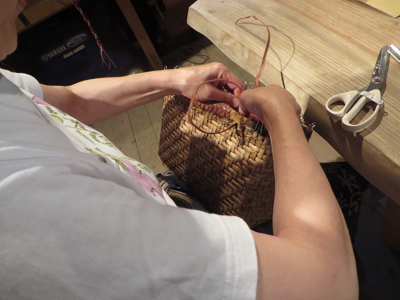 暑さにめげずカゴ編み