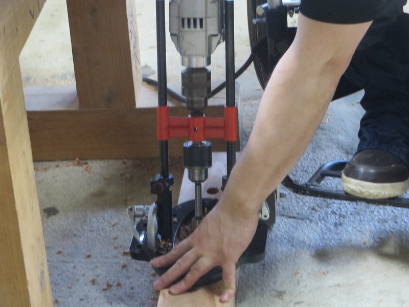 車椅子大工の椅子造りが進んでいました。写真を見るだけだと、車椅子に乗り玄翁を振り上げて振り下ろす単純な作業に見えますが、健常者でも椅子に座ってのこの作業は、両足で立ち全身に力を入れて行う事と比べても力の入れ具合バランスに難儀するものです。よくやっていると感じます。