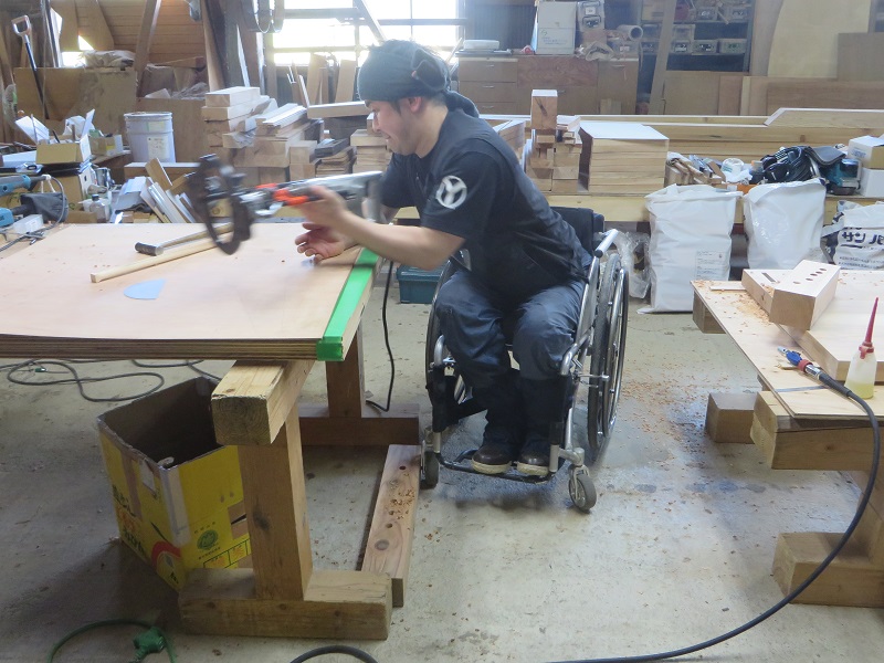 車椅子大工の家具造りは納期も迫り、追い込み状態ですが、流石に応援の手を借りないとままならず、当たり前の健常者感覚との相違が見て取れてしまうのですが、差別意思を抑えて仕事をさせる側にはある種の罪悪感をこうして書きながらも感じてしまいます。それ以上にこうして頑張る姿には毎回勇気を貰います。