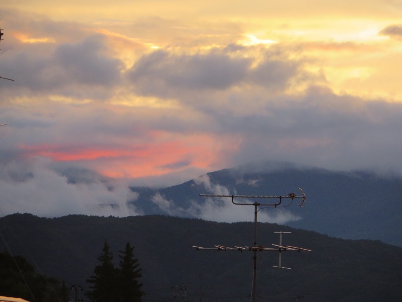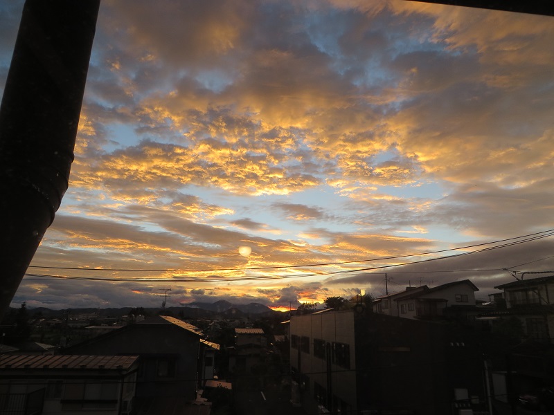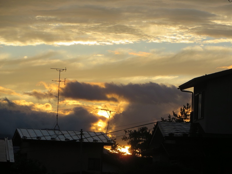 今日から8月葉月に入りましたが、昨日は文月7月最後の日の空が印象的でした。青空に浮かぶ白い雲が黄金色に変わりそして赤く橙色に染め上げられていく様を写してみました。それでもまだ青い空がありました。