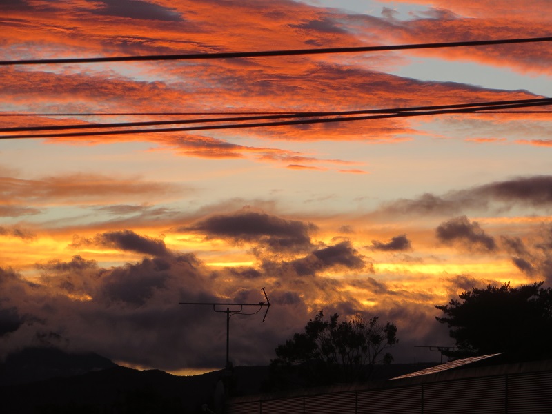 猛烈に暑い日が続いています。入道雲が見えると雨を期待しても降りません。夕焼けが美しくても明日も晴れて暑いのだろうと思ってしまいます。