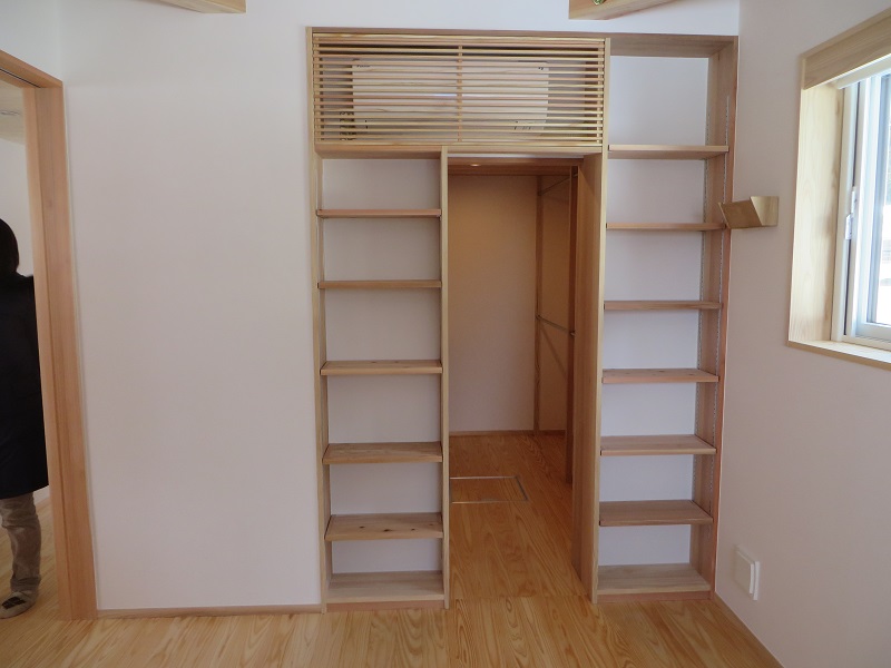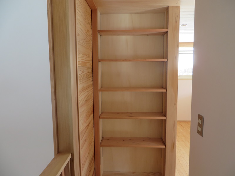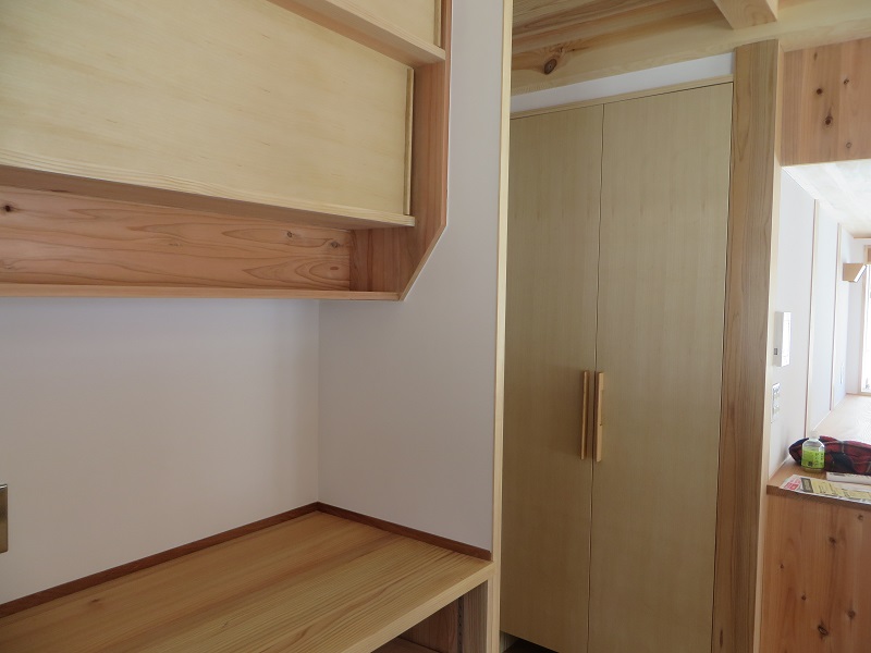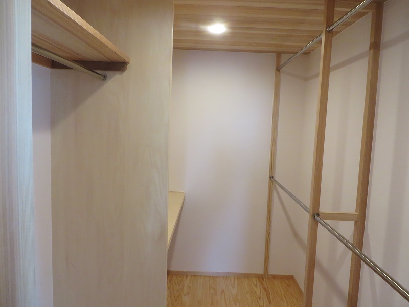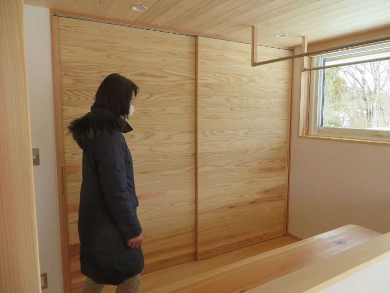 鶯宿の新築工事2階の完成写真です。30坪以内のコンパクト住宅ですが、収納もたくさん取れていて暮らしやすいお住まいと感じられます。
