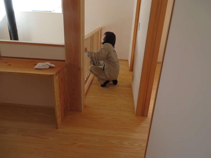2階に上がると担当した栗城が一生懸命にお掃除してました。