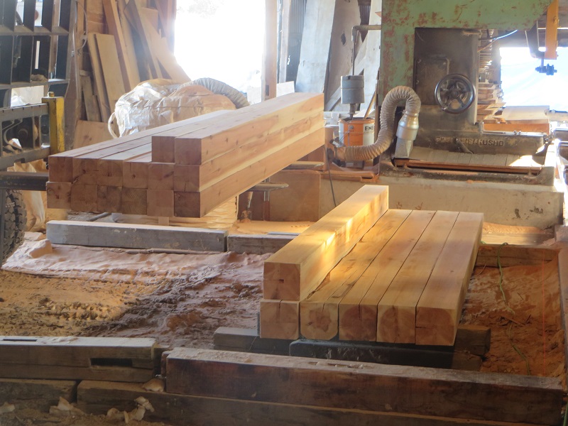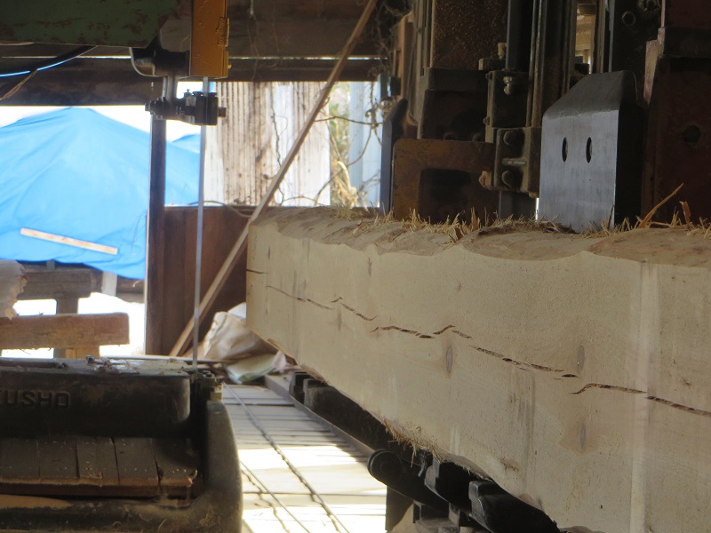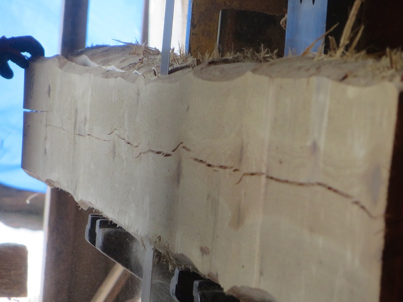 綺麗に修正挽された落葉松の4寸角です。まだまだこれから丸太を挽きたいので直らないと困りますね。