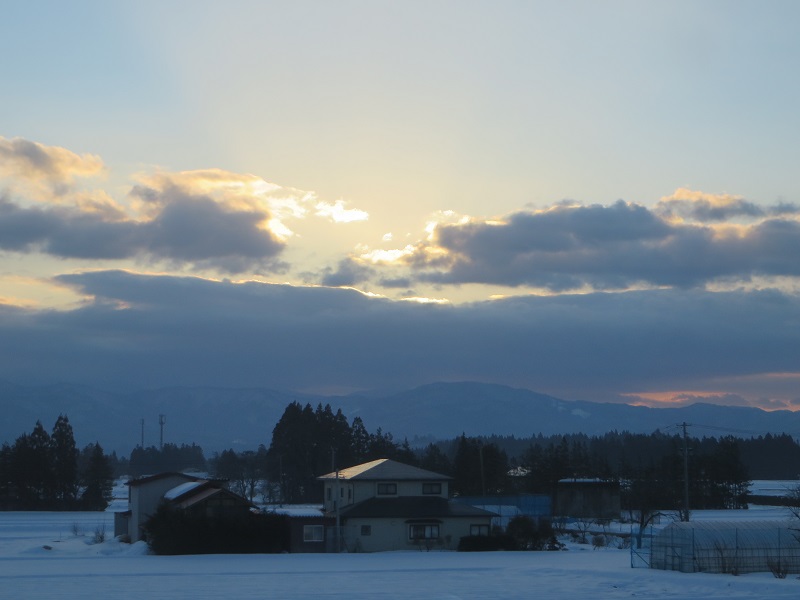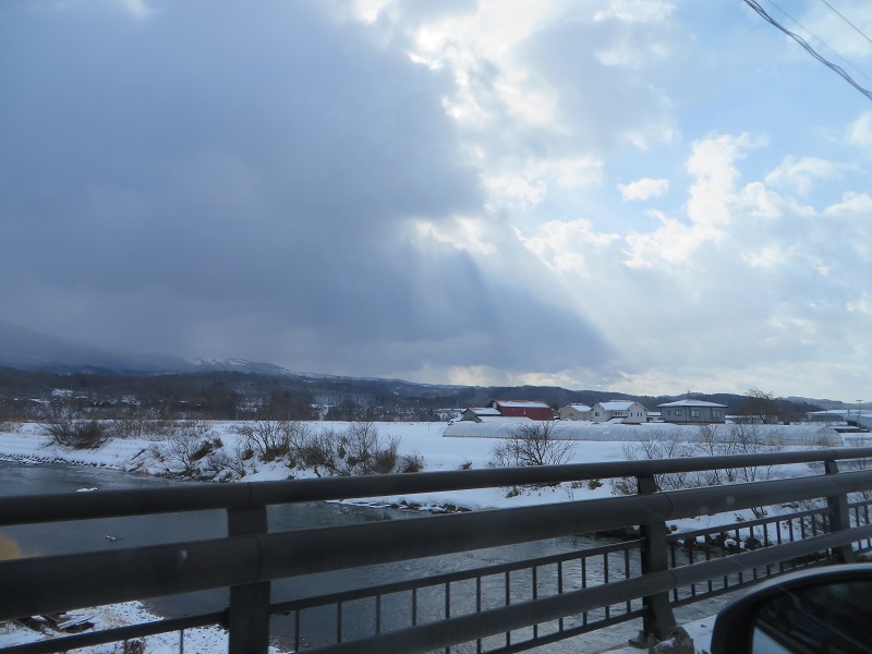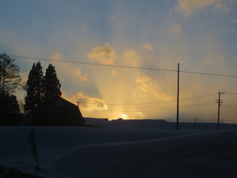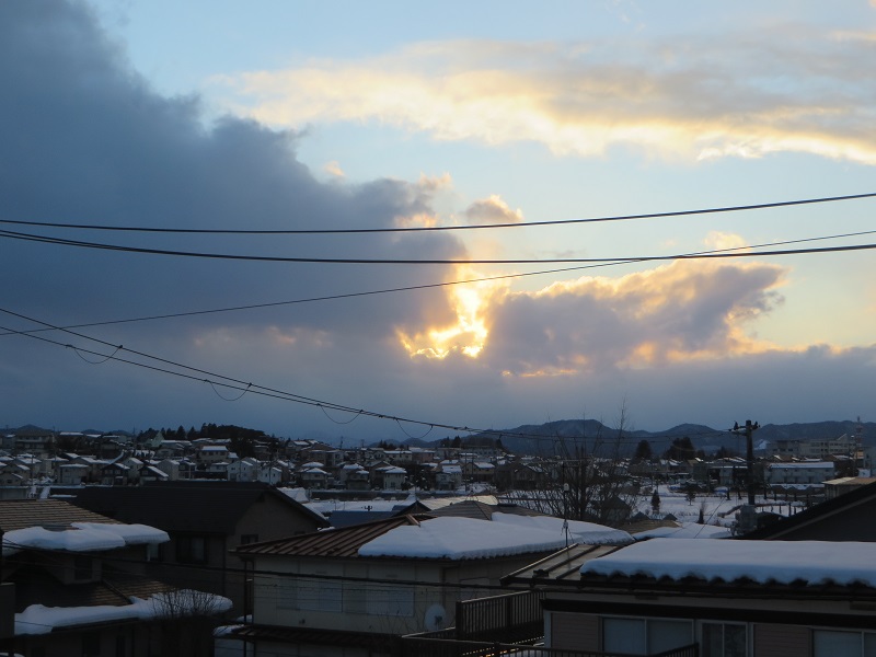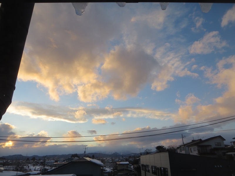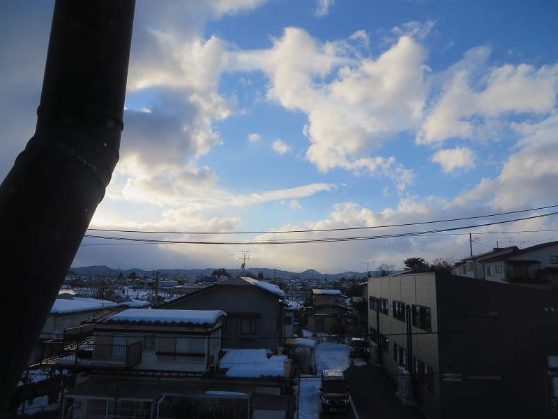 朝からすでに雪どけの音がする好摩です。昨日までのキリっとした空気は大分和らいだ気がします。厚い雲と青空、雪も時々ちらつきますが、今日は青空が勝つでしょうか?暖かさにつられて、野山も街も人も淡く色づいてきそうです。(栗城)