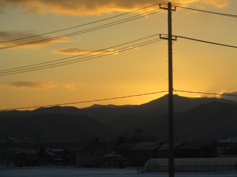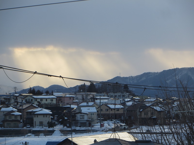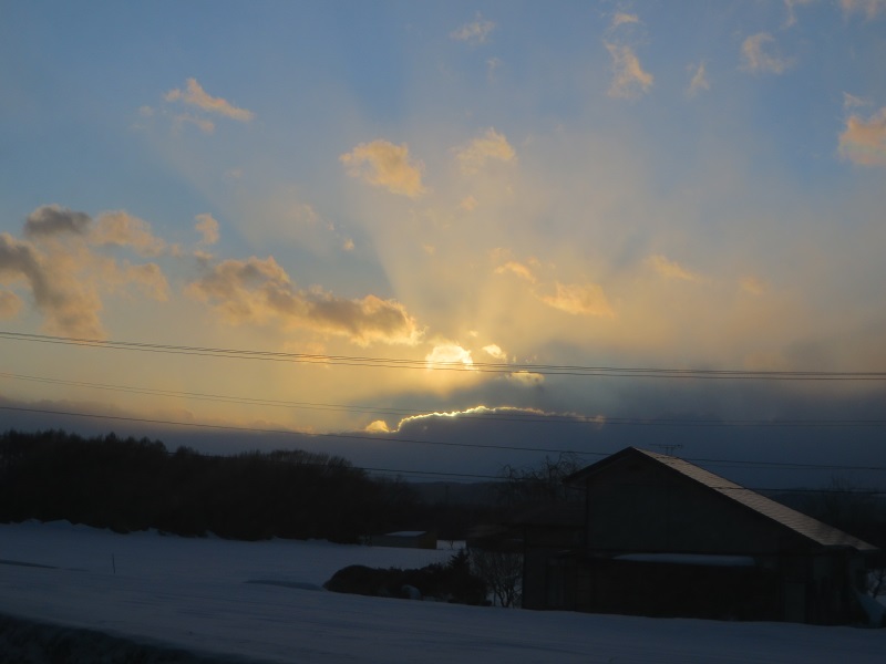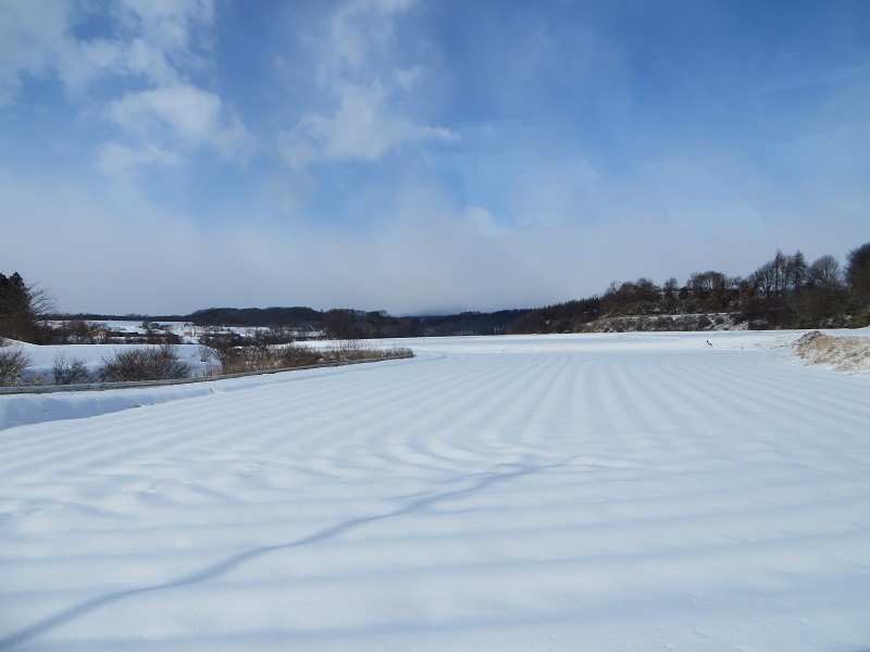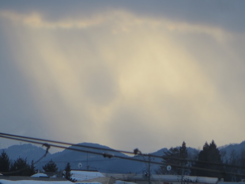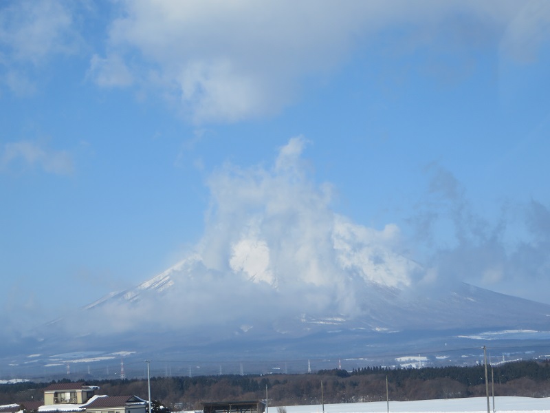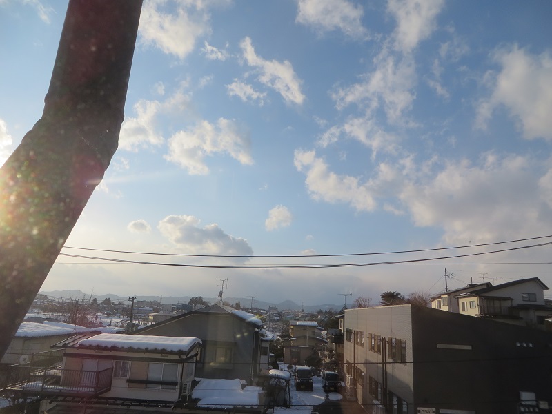 朝からすでに雪どけの音がする好摩です。昨日までのキリっとした空気は大分和らいだ気がします。厚い雲と青空、雪も時々ちらつきますが、今日は青空が勝つでしょうか?暖かさにつられて、野山も街も人も淡く色づいてきそうです。(栗城)