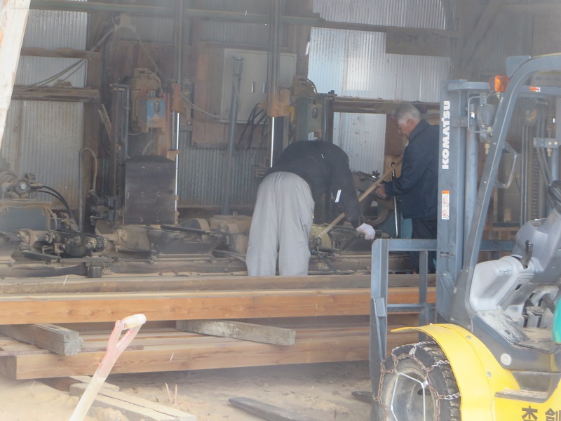 製材機の台車のモーターが焼き付けを起こして故障したので、製材が出来ない合間で角材の四面自動鉋掛けが出来るモルダーを稼働しての鉋掛けを進めていました。