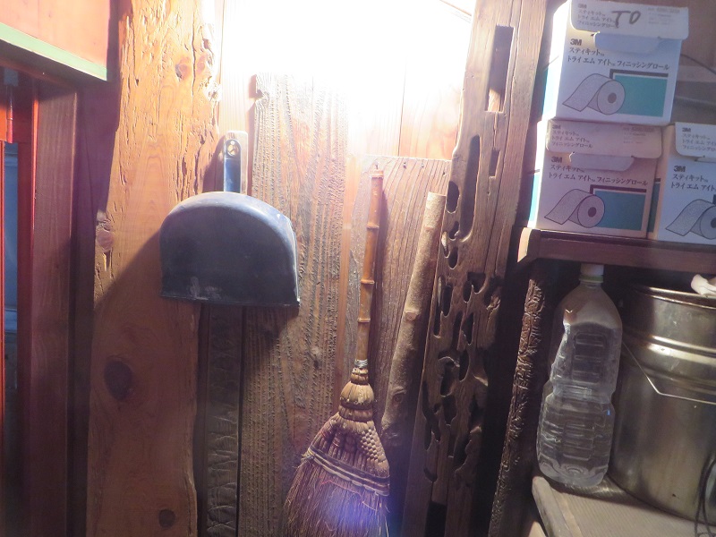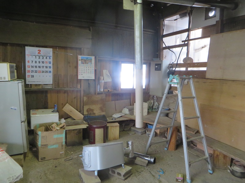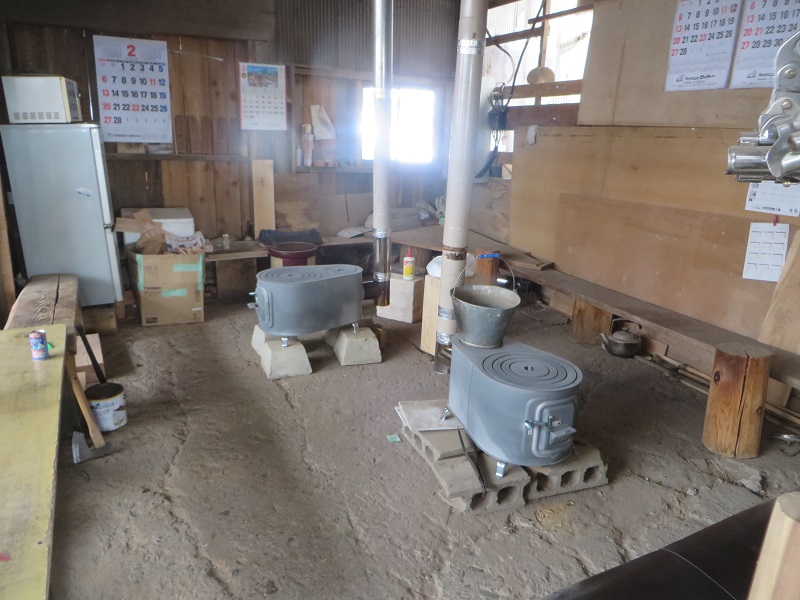 大工の休憩所の冬は、薪ストーブが欠かせません。俗に言う、達磨ストーブとか時計型ストーブと云われる昔からの鉄板ストーブですが、その前に使っていたのが事務所からの御下がりのガスボンベストーブでした。木の家造りをしているので、燃やすのは刻み時に出て来る端材や製材時の端材背板類なので、燃やす薪に困る事はありません。剥ぎ合わせ板を造る際にも接着剤の凍結を布瀬ぐ為に休憩所の薪ストーブの熱を利用してもいますね。ところで、当初のガスボンベストーブが壊れて穴が開いて来たので、新品の鉄板ストーブにとりかえました。本体約5千円弱の安価なタイプです。これは数年でまた買い替えになるとは思われますが、もとよりそうした代物です。そして直火に近い位に暖かく、言い換えれば熱過ぎるほどですが、大工の冬の休憩所には無くてはならないものです。