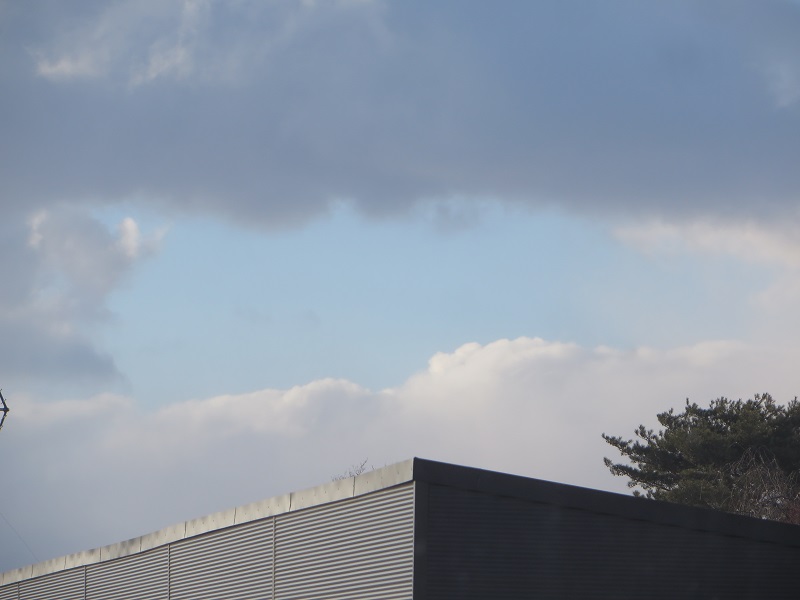 霞始めてたなびくと云われる雨水を迎えました。空を見上げると雲の動きに目を見張る此の頃です。良く考えると雪も雲も液体の水が固定化したものです。本質は雨水であり、性質は流動し方円の器に丸く収まる例え通りに自由自在に変化適応してもいます。刻々と流れる様に形が変わる雲を眺め写真を写してみましたが、そこに太陽の日差しがあるだけで、大きく印象も変化すると感じました。