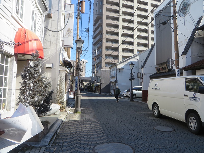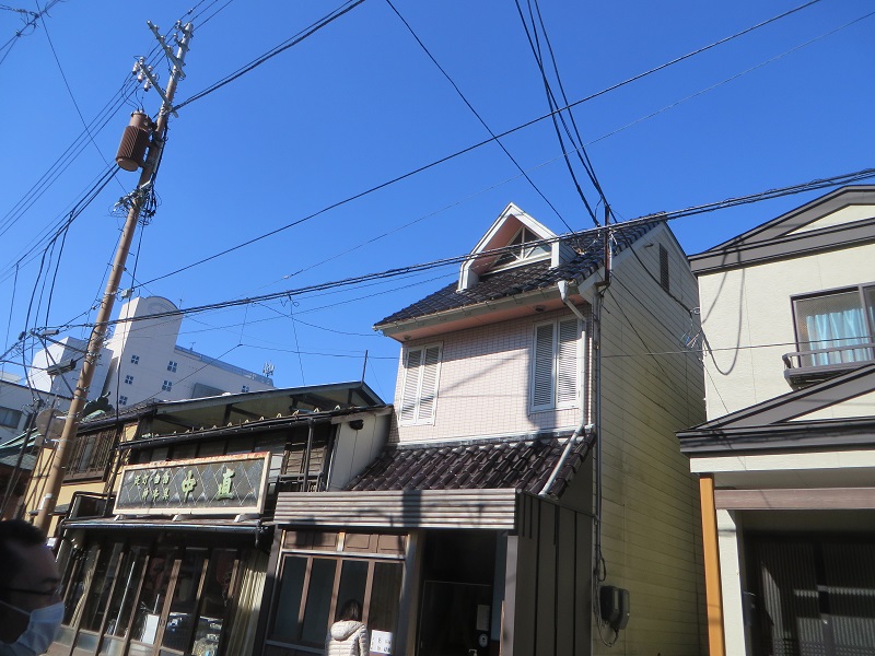 引き続きの中の橋通りですが、普段車で移動しているだけだと、見れないものを見れる良さが町中を徒歩で、歩く事です。免震構造の15階建てマンションを見ました。また、この界隈は昔「葺手町」と呼ばれていたそうですね。レンガ敷きの道路が素敵で、老舗有名蕎麦店の東屋さんが惹きたちます。